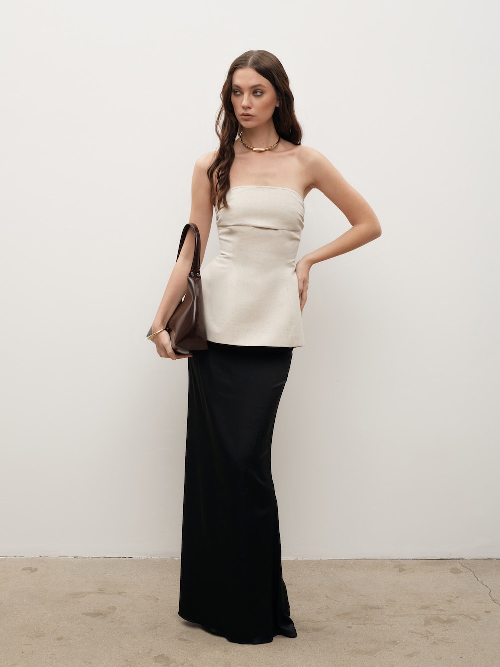 Топ без бретелей, созданный будто для летнего вечера, где каждая деталь работает на ощущение притягательности.