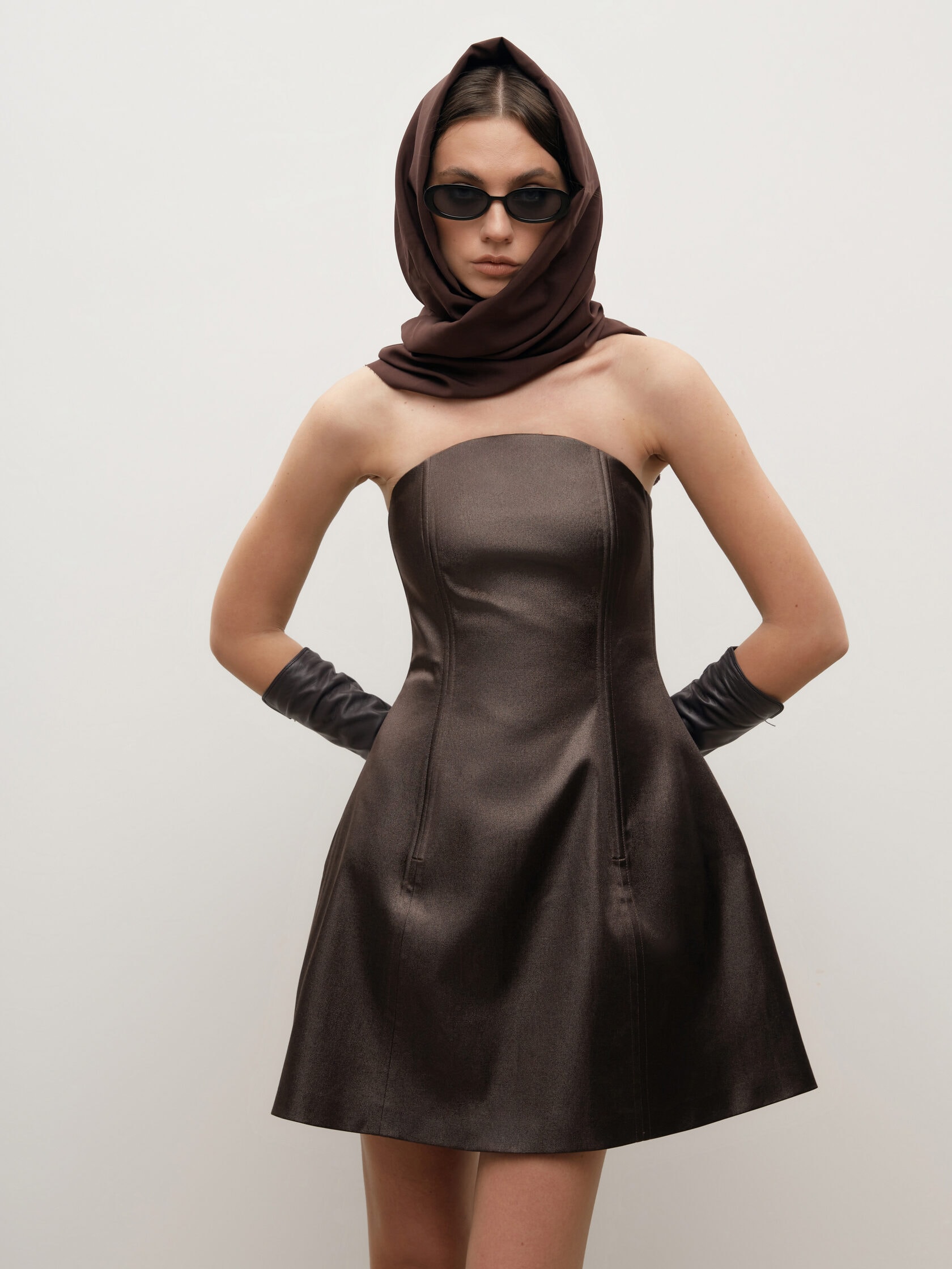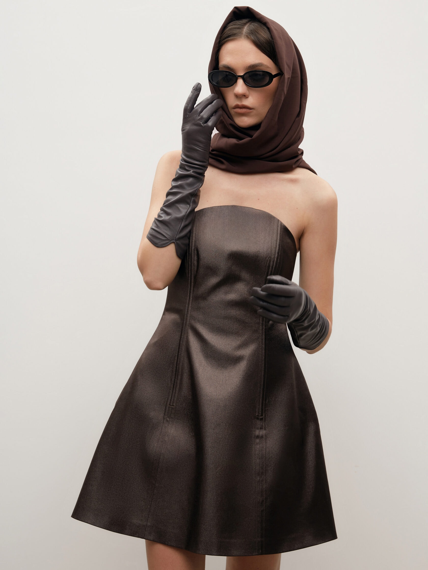 Корсажное мини платье «Ла Скала» с акцентным силуэтом и легким блеском.