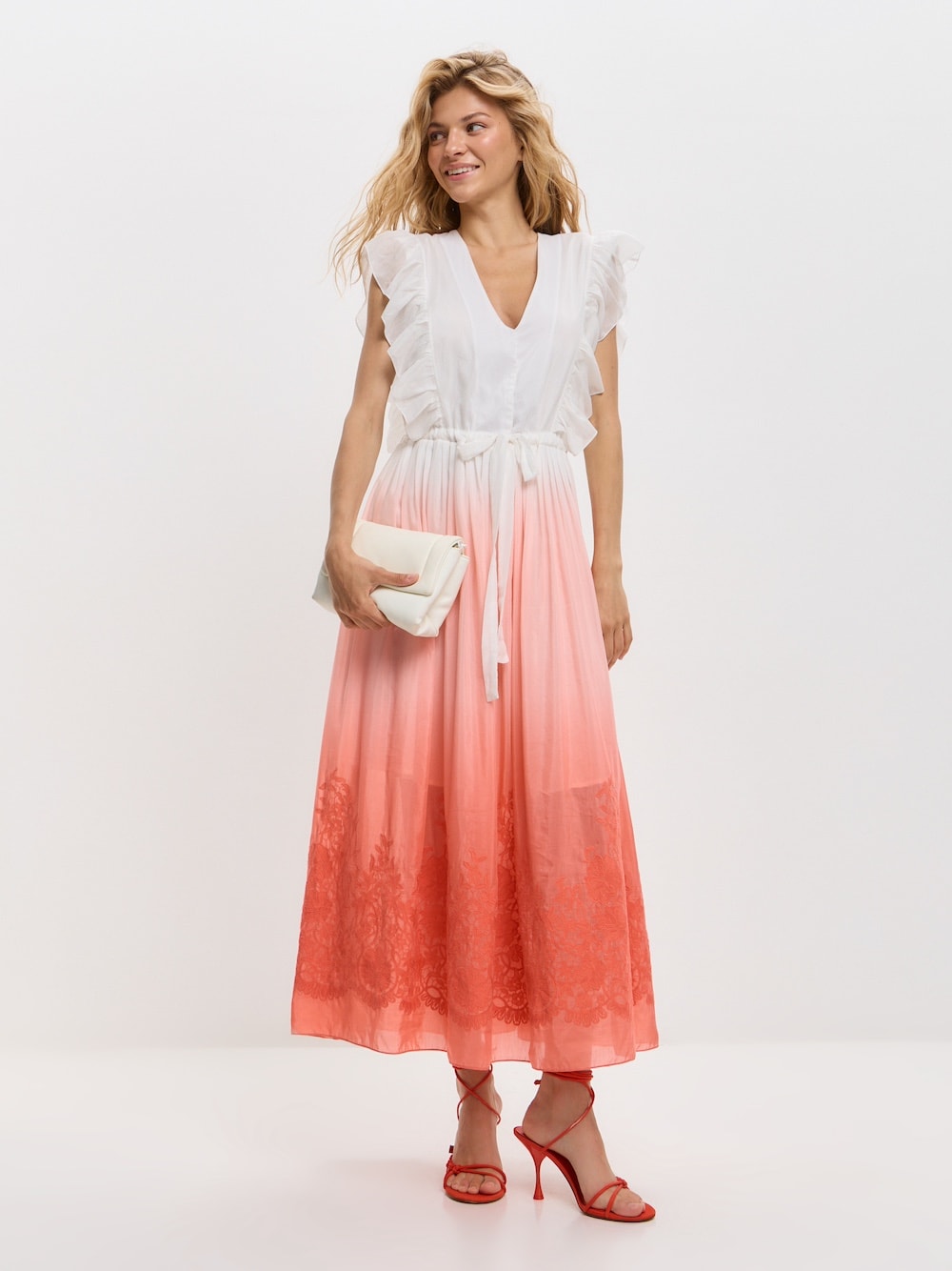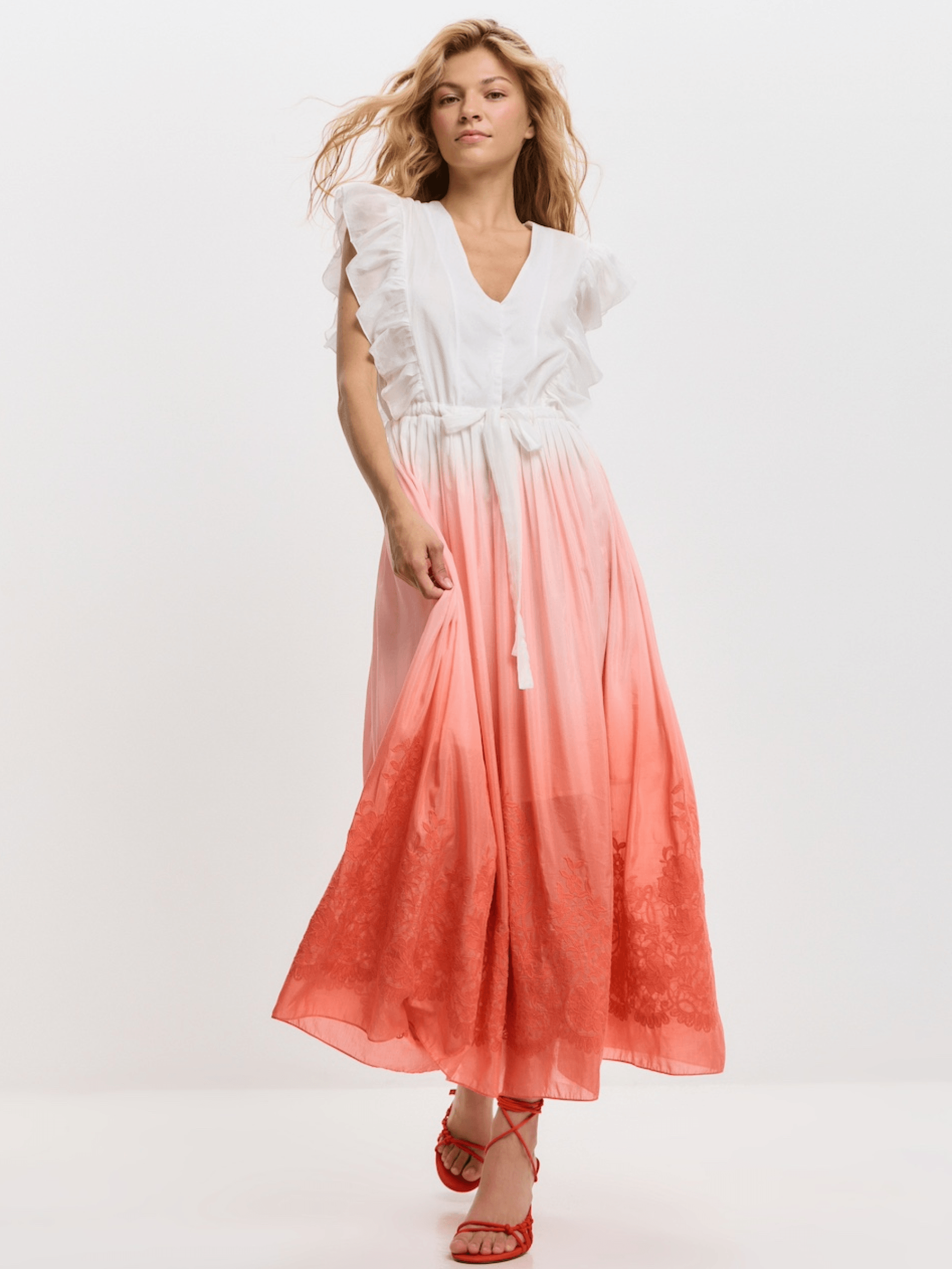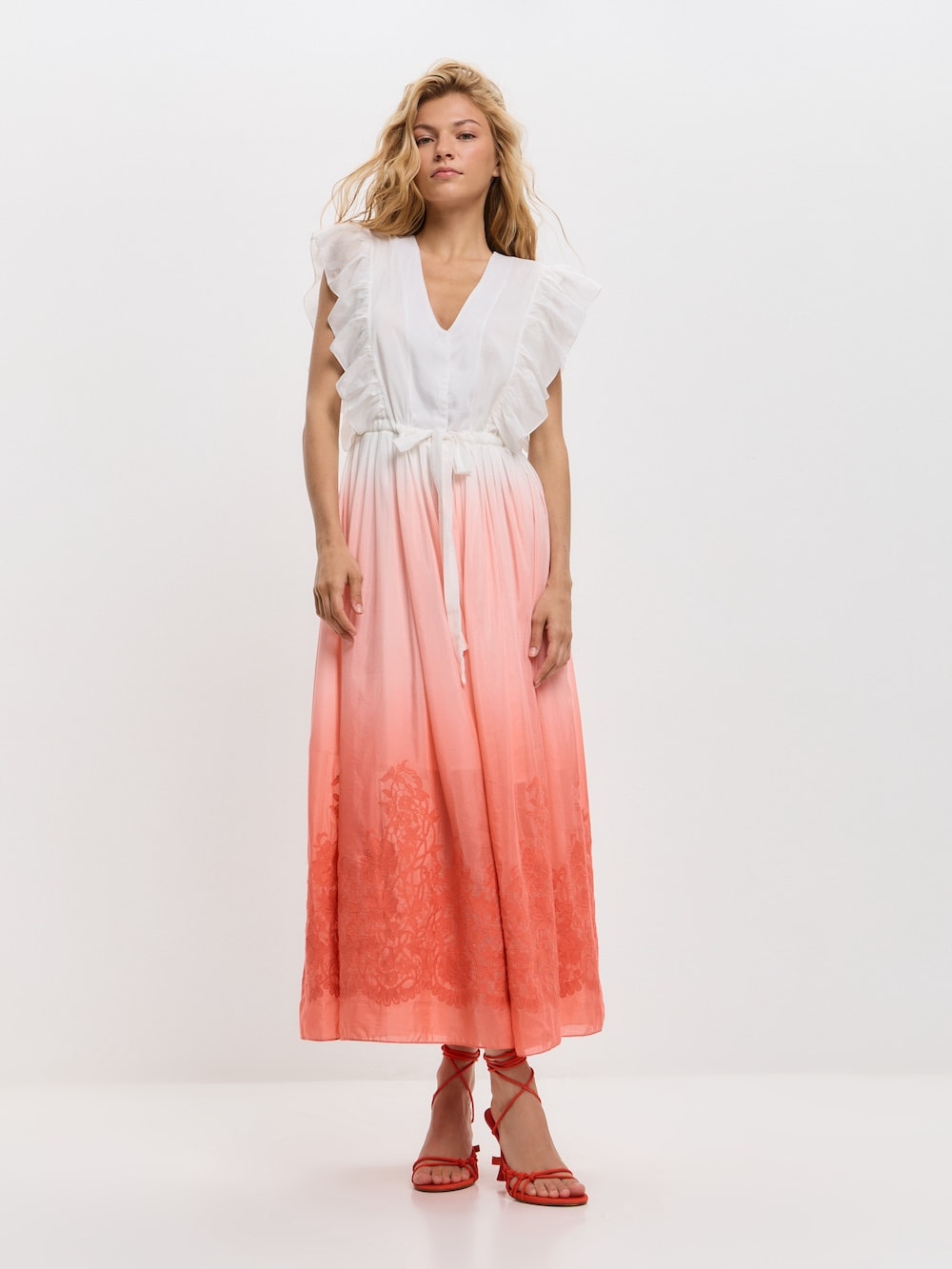 Макси-длина делает силуэт утончённым, а регулирующий пояс на талии позволяет идеально адаптировать посадку под фигуру, сохраняя воздушность образа.